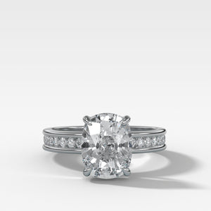 READY TO SHIP: Petite Channel Set Engagement Ring with Lab Grown Elongated Cushion Diamond