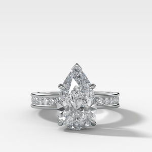Petite Channel Set Engagement Ring with Pear Cut Diamond