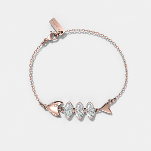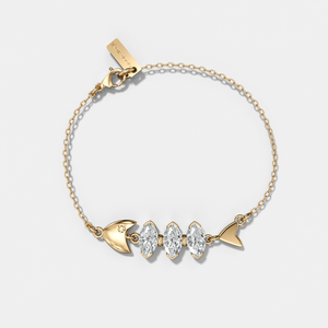 A sculptural fish motif glides effortlessly around the wrist, illuminated by meticulously set diamonds that catch the light with every movement.