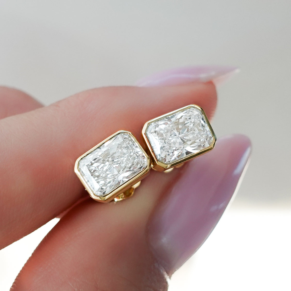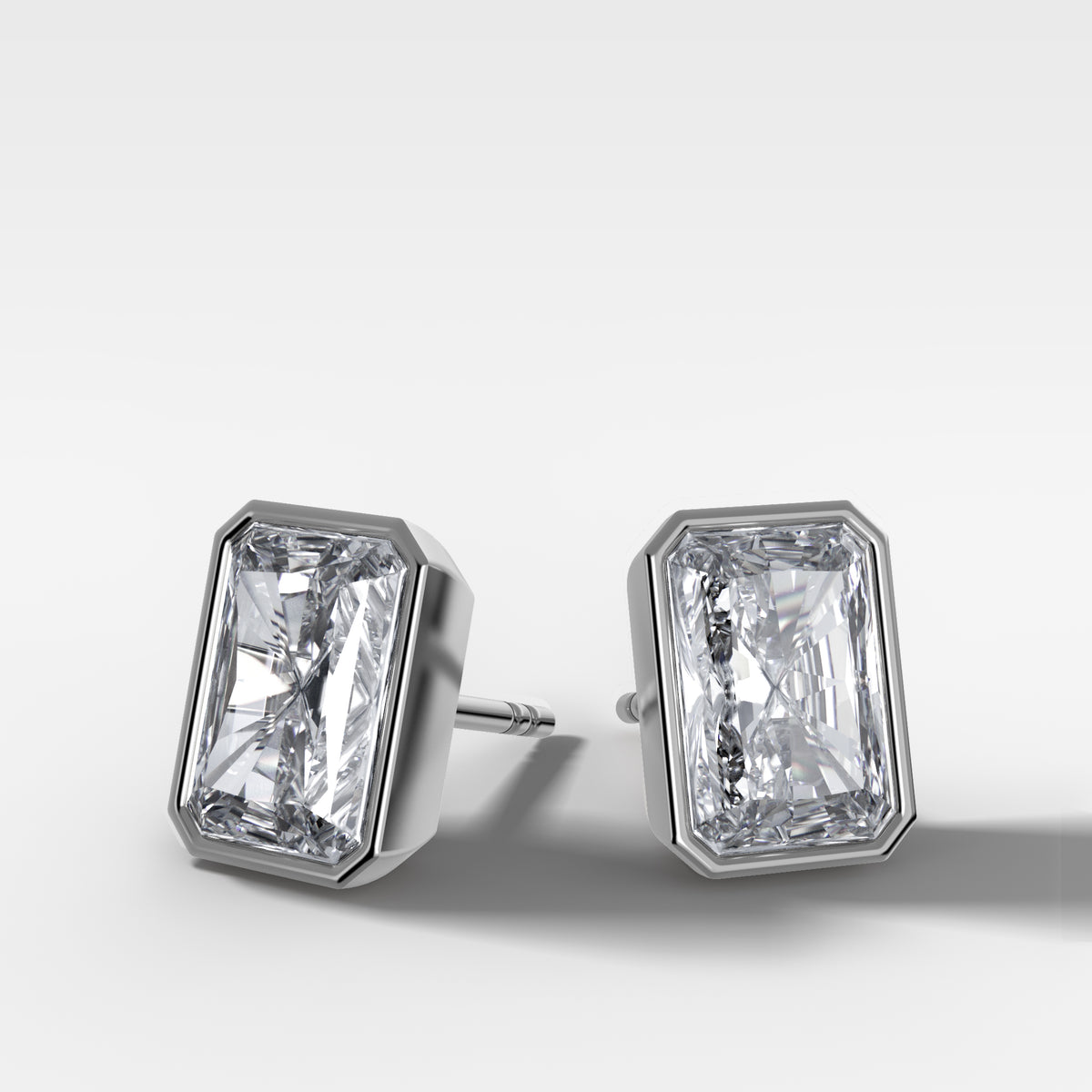 Bezel Set Elongated Radiant Diamond Studs