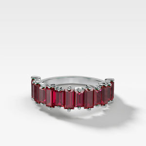 This is a stunning piece, perfect for adding style and flair to any look. Made using baguettes shaped red ruby gemstones, it has a unique yet timeless aesthetic that will never go out of style.