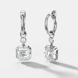 Reversed Tiered Button Back Drop Huggies with Asscher Cut Diamonds