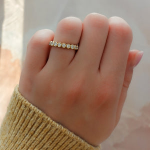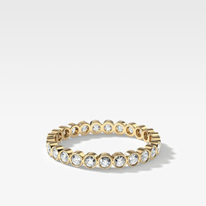 An old school style - little round diamonds bezel set in the metal of your choice. Featured here in the full Eternity style.