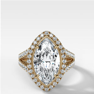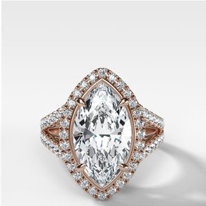 Split Shank Halo Engagement Ring With Marquise Cut Diamond