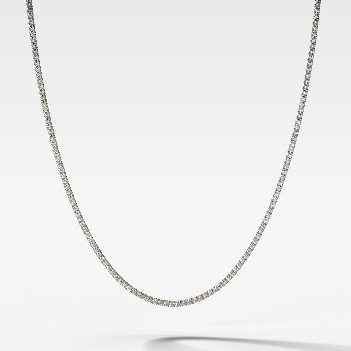 Introducing the dazzling Straight Line Tennis Necklace, your go-to accessory for unmatched sparkle and elegance. Crafted with outstanding FG/VS color/clarity diamonds, this 18-inch masterpiece emanates an unmatched brilliance and allure, ensuring all eyes are drawn to its mesmerizing sparkle. The Straight Line Tennis Necklace is a truly versatile statement piece, whether you're attending an illustrious gala or simply gracing an intimate dinner party – this is the accessory that will elevate your presence on any occasion.