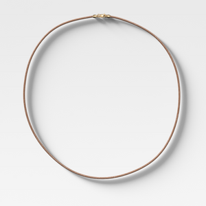 A warm-toned essential for everyday wear. Our tan leather cord necklace features a sleek silhouette and a solid 14k gold clasp—perfect for stacking with your favorite chains or wearing solo. Versatile, elevated, and effortlessly cool.