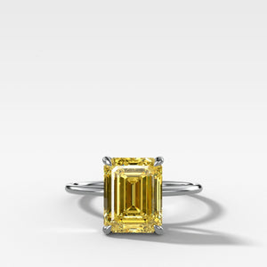 Discover the easiest-wearing solitaire we've ever made- in canary yellow. This prong-set North South Emerald Cut is the ideal silhouette to showcase a jaw-dropping solitaire, yet fixed to a barely-there band. Featured here with a yellow diamond, radiating warmth.