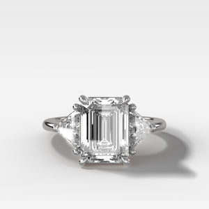 Send ring sizerA sexy three stone engagement ring that all edge - two rare "shield cut" diamonds flank the center stone of your choice.