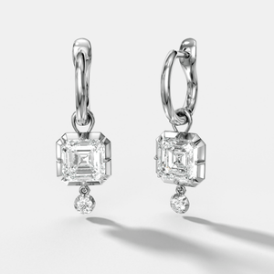 Tiered Button Back Drop Huggies with Asscher Cut Diamonds