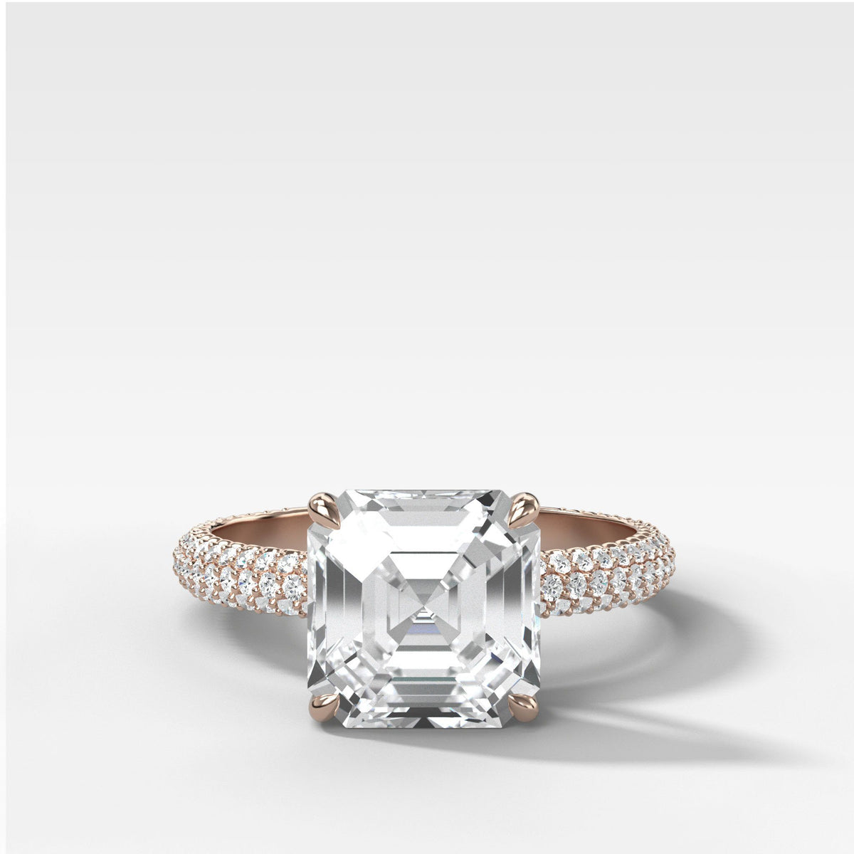 Triple Row Pavé Engagement Ring With Asscher Cut Diamond