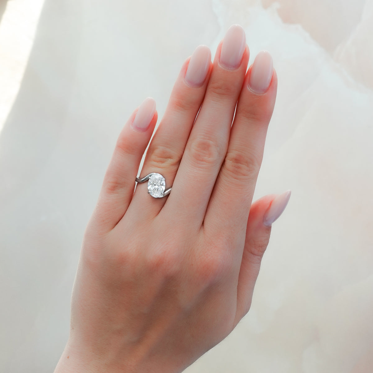 Wave Solitaire Engagement Ring with Oval Cut Diamond
